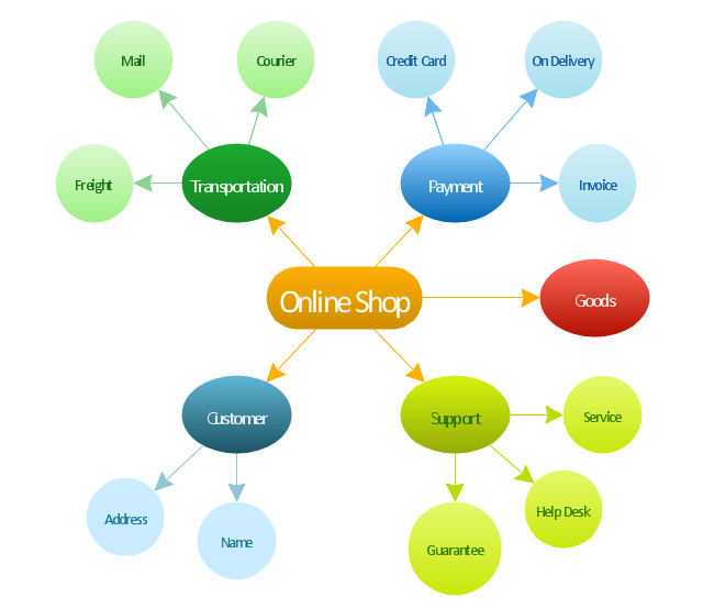 "Online shopping or e-shopping is a form of electronic commerce which allows consumers to directly buy goods or services from a seller over the Internet using a web browser. Alternative names are: e-web-store, e-shop, e-store, Internet shop, web-shop, web-store, online store, online storefront and virtual store. Mobile commerce (or m-commerce) describes purchasing from an online retailer's mobile optimized online site or app. An online shop evokes the physical analogy of buying products or services at a bricks-and-mortar retailer or shopping center; the process is called business-to-consumer (B2C) online shopping. In the case where a business buys from another business, the process is called business-to-business (B2B) online shopping. ... Retail success is no longer all about physical stores. This is evident because of the increase in retailers now offering online store interfaces for consumers. With the growth of online shopping, comes a wealth of new market footprint coverage opportunities for stores that can appropriately cater to offshore market demands and service requirements." [Online shopping. Wikipedia] The concept map example "Online shop" was created using the ConceptDraw PRO diagramming and vector drawing software extended with the Concept Maps solution from the area "What is a Diagram" of ConceptDraw Solution Park.