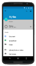 This Android 5 UI design example shows My Files screen of Google Nexus 6 smartphone.