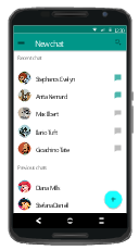 This Android 5 UI design example shows New chat screen of Google Nexus 6 smartphone.