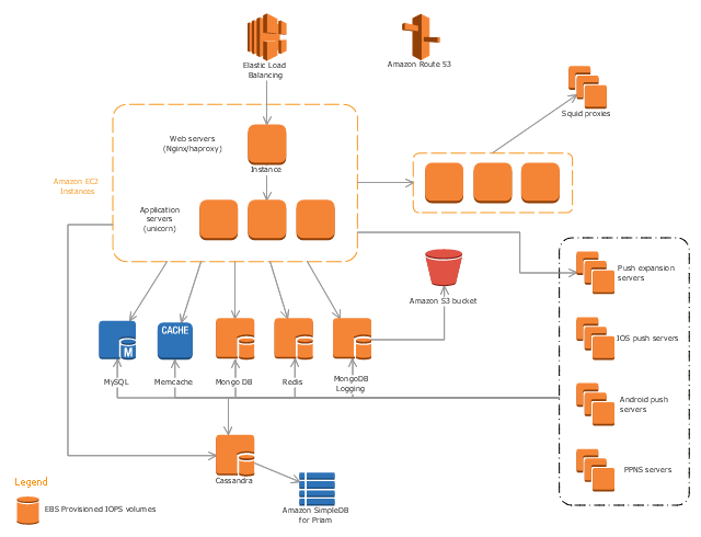 This exaple was created on the base of diagram "Parse Architecture on AWS" from the article "AWS Case Study: Parse".