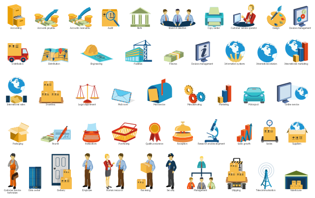 The vector stencils library "Sales department" contains 49 department symbols.
