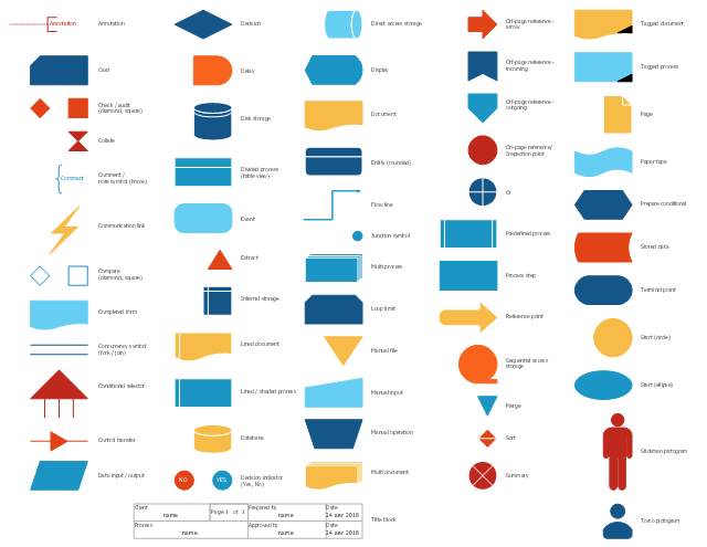 Flowchart symbols, torso pictogram, title block, terminal point, tagged process, tagged document, summary, subroutine, predefined process, stored data, stickman pictogram, start, sort, sequential access storage, reference point, process step, preparation, prepare conditional, paper tape, page, or, on-page reference, inspection point, off-page reference, multi process, multi document, merge, manual operation, manual input, manual file, loop limit, lined process, shaded process, lined document, junction symbol, internal storage, flow line, arrow, connector, extract, part, device, event, entity, document, divided process, display, disk storage, direct access storage, delay, decision indicator, yes, decision indicator, no, decision, database, data input, data output, control transfer, conditional selector, concurrency symbol, completed form, document, compare, communication link, collate, check, audit, card, brace callout, comment, note, annotation,