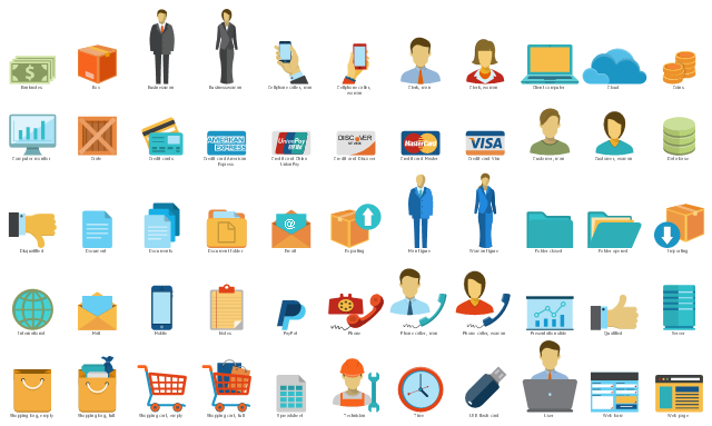 The icons example "Design elements - Sales symbols" is included in the Sales Flowcharts solution from the Marketing area of ConceptDraw Solution Park.