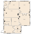 HVAC floor plan, window, casement, wall, supply, duct, sliding glass, return, duct, double door, door, L-room,