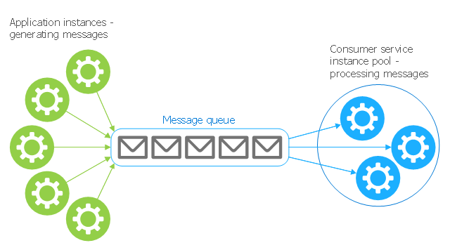 This Azure cloud architecture pattern diagram template was created on the base of figure in the article "Competing Consumers Pattern" from the Microsoft Developer Network (MSDN) website. "Competing Consumers Pattern. Enable multiple concurrent consumers to process messages received on the same messaging channel. This pattern enables a system to process multiple messages concurrently to optimize throughput, to improve scalability and availability, and to balance the workload. ... An application running in the cloud may be expected to handle a large number of requests. Rather than process each request synchronously, a common technique is for the application to pass them through a messaging system to another service (a consumer service) that handles them asynchronously. This strategy helps to ensure that the business logic in the application is not blocked while the requests are being processed. ... Use a message queue to implement the communication channel between the application and the instances of the consumer service. The application posts requests in the form of messages to the queue, and the consumer service instances receive messages from the queue and process them. This approach enables the same pool of consumer service instances to handle messages from any instance of the application." [msdn.microsoft.com/ru-RU/library/dn568101.aspx] The Azure cloud system architecture diagram template "Competing consumers pattern" for the ConceptDraw PRO diagramming and vector drawing software is included in the Azure Architecture solutin from the Computer and Networks area of ConceptDraw Solution Park.