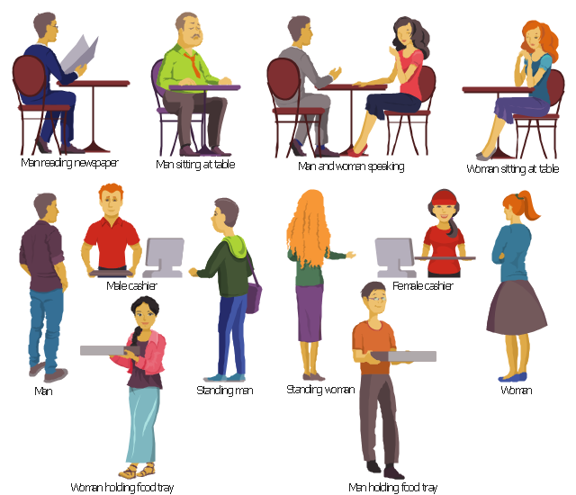 The cafeteria clip art example "Design elements - Cafe people" is included in the Food Court solution from the Food and Beverages area of ConceptDraw Solution Park.