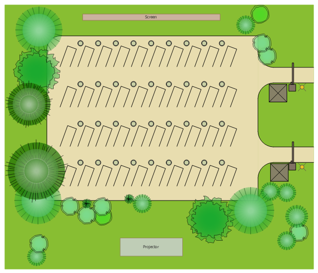 The site plan example "Drive-in theater" was created using the ConceptDraw PRO diagramming and vector drawing software extended with the Site Plans solution from the Building Plans area of ConceptDraw Solution Park.