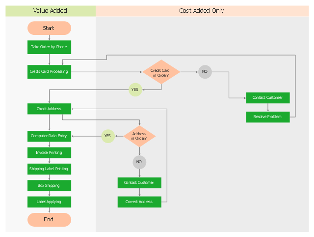 "Opportunity flowcharts are a variation of detailed basic flowcharts. They get their name because they highlight opportunities for improvement. Like all flowcharts, they make the process visible. But they take this idea one step further by separating value-added steps (those essential for making the product or service) from cost-added-only steps (those that are included only to check for or fix problems). ...