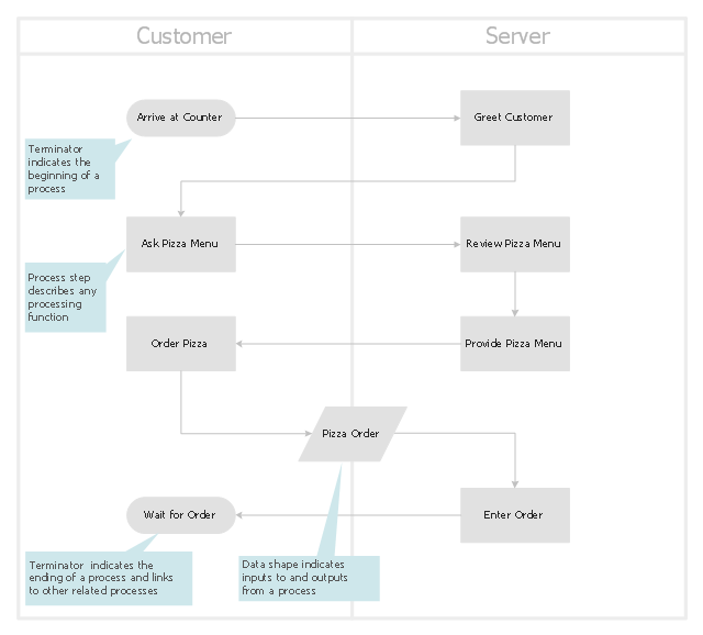 Cross-functional flowchart template, terminator, swim lanes, vertical swimlanes, process, data,