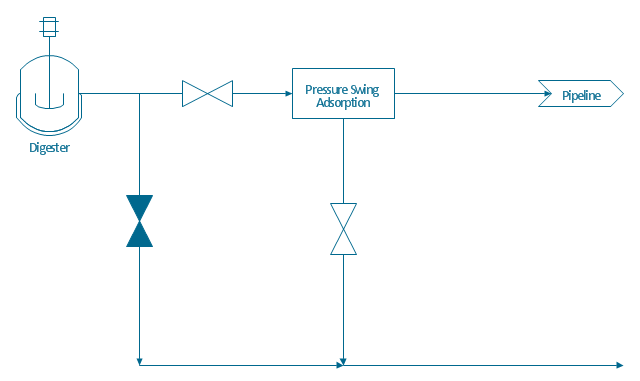 The process flow diagram (PFD) template for the ConceptDraw PRO diagramming and vector drawing software is included in the Chemical and Process Engineering solution from the Engineering area of ConceptDraw Solution Park.