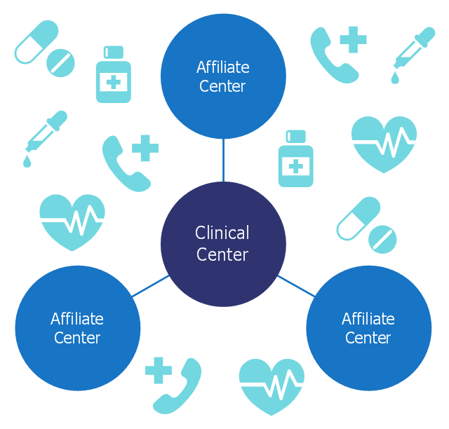 The diagram example "TrialNet clinical center" was created using the ConceptDraw PRO diagramming and vector drawing software extended with the Circle-Spoke Diagrams solution from the area "What is a Diagram" of ConceptDraw Solution Park.