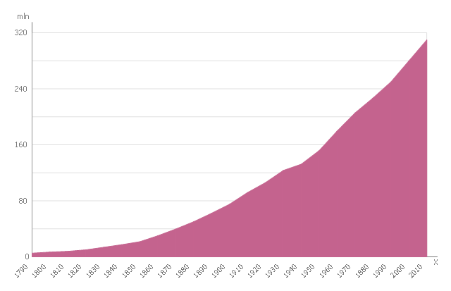 The area graph example "US Census Population Graph from 1790" was created using the ConceptDraw PRO diagramming and vector drawing software extended with the Area Charts solution from the Graphs and Charts area of ConceptDraw Solution Park.