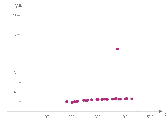 This scatter graph (scattergraph. scatter chart, scatter plot, scatterplot, scatter diagram) sample shows outliers. It was designed on the base of data from the Engineering Statistics Handbook on the website of the National Institute of Standards and Technology (NIST), the U.S. Department of Commerce.