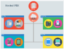 Infographic, touchscreen phone, tablet, iPad, smartphone, ribbon text block, people, laptop, digital phone, data center, cordless phone, mobile charger, communication, messenger, cloud, IP phone,