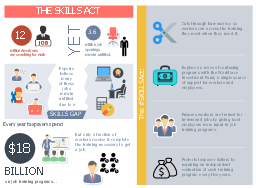 This business infographic sample illustrates the Supporting Knowledge and Investing in Lifelong Skills (SKILLS) Act. It was designed on the base of the infographic "The SKILLS Act" from the website of the U.S. Committee on Education and the Workforce. [edworkforce.house.gov/uploadedphotos/highresolution/1614f584-af36-434e-8746-8bd85da34e28.jpg] "To reform the nation'sbroken job training system, House Republicans are advancing the Supporting Knowledge and Investing in Lifelong Skills (SKILLS) Act (H.R. 803), legislation that will help put Americans back to work." [edworkforce.house.gov/skillsact/] The business infographic example "SKILLS Act" was designed using ConceptDraw PRO diagramming and vector drawing software extended with the Business and Finance solution from Illustration area of ConceptDraw Solution Park.