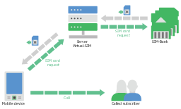 This telecommunication diagram sample shows the virtual-SIM principle of operation. It was designed on the base of Wikimedia Commons file: Схема-работы-Virtual-SIM.jpg.