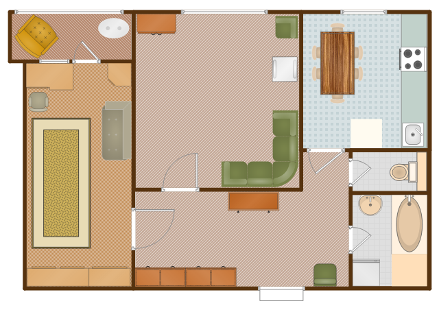The Apartment plan example was created using ConceptDraw PRO diagramming and vector drawing software extended with the Floor Plans solution from the Building Plans area of ConceptDraw Solution Park.