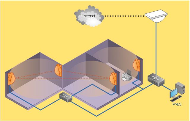 The wireless network diagram example "Office WLAN" was created using the ConceptDraw PRO diagramming and vector drawing software extended with the Wireless Networks solution from the Computer and Networks area of ConceptDraw Solution Park.