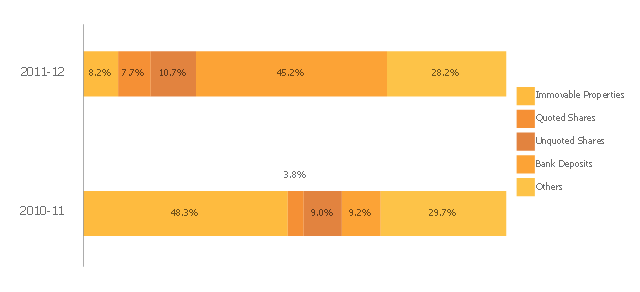 This divided bar diagram sample shows the composition of estates in Hong Kong for 2010-2011 and 2011-2012. It was designed on the base of the figure "Composition of estates" from the website of the Inland Revenue Department of the Government of the Hong Kong Special Administrative Region.