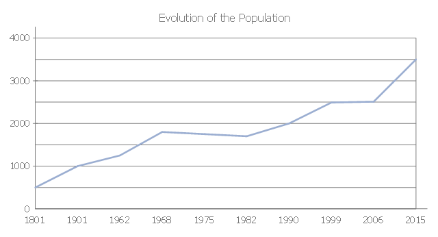 This line graph sample shows evolution of the population from 1801 till nowadays. It was designed on the base of the Wikimedia Commons file: Evolution de la population vertoise 1801 maintenant.JPG [commons.wikimedia.org/wiki/File:Evolution_de_la_population_vertoise_1801_maintenant.JPG]. "Evolution is the change in the inherited characteristics of biological populations over successive generations. Evolutionary processes give rise to diversity at every level of biological organisation, including species, individual organisms and molecules such as DNA and proteins. All life on Earth is descended from a last universal ancestor that lived approximately 3.8 billion years ago. Repeated speciation and the divergence of life can be inferred from shared sets of biochemical and morphological traits, or by shared DNA sequences. These homologous traits and sequences are more similar among species that share a more recent common ancestor, and can be used to reconstruct evolutionary histories, using both existing species and the fossil record. Existing patterns of biodiversity have been shaped both by speciation and by extinction." [Evolution. Wikipedia] The line chart example "Evolution of the population" was created using the ConceptDraw PRO diagramming and vector drawing software extended with the Basic Line Graphs solution from the Graphs and Charts area of ConceptDraw Solution Park.
