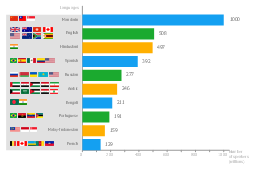 This horizontal bar graph sample shows the number of speakers for the most spoken languages of the world. "In the philosophy of language, a natural language (or ordinary language) is any language which arises in an unpremeditated fashion as the result of the innate facility for language possessed by the human intellect. A natural language is typically used for communication, and may be spoken, signed, or written. Natural language is distinguished from constructed languages and formal languages such as computer-programming languages or the "languages" used in the study of formal logic, especially mathematical logic. ... Though the exact definition varies between scholars, natural language can broadly be defined in contrast on the one hand to artificial or constructed languages, computer programming languages like Python and international auxiliary languages like Esperanto, and on the other hand to other communication systems in nature, such as the waggle dance of bees. Although there are a variety of natural languages, any cognitively normal human infant is able to learn any natural language. By comparing the different natural languages, scholars hope to learn something about the nature of human intelligence and the innate biases and constraints that shape natural language, which are sometimes called universal grammar. The term "natural language" refers only a language that has developed naturally, and hence to actual speech, rather than prescribed speech. Hence, unstandardized speech (such as African American Vernacular English) is natural, whereas standardized speech such as Standard American English, which is in part prescribed, is somewhat artificial." [Natural language. Wikipedia] The horizontal bar chart example "The most spoken languages of the world" was created using the ConceptDraw PRO diagramming and vector drawing software extended with the Basic Bar Graphs solution from the Graphs and Charts area of ConceptDraw Solution Park.