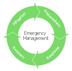 The arrow circle diagram example "Emergency management process" was created using the ConceptDraw PRO diagramming and vector drawing software extended with the Basic Circular Arrows Diagrams solution from the area "What is a Diagram" of ConceptDraw Solution Park.