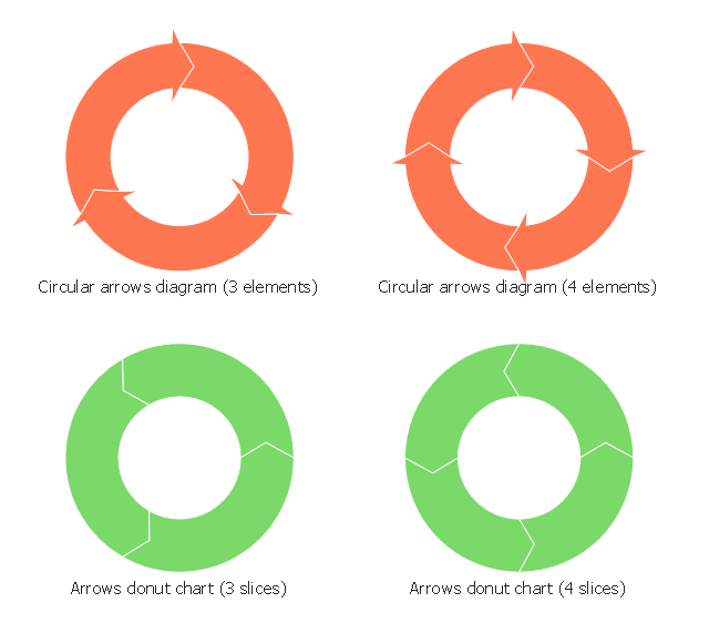 The vector stencils library "Basic circular arrows diagrams" contains 4 templates of circular arrows diagrams and arrow donut charts for the ConceptDraw PRO diagramming and vector drawing software.