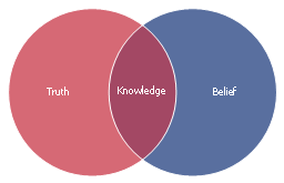 This Venn diagram sample illustrates the Plato's definition of knowledge. It was redrawn from the Wikimedia Commons file: Belief Venn diagram.svg. [commons.wikimedia.org/wiki/File:Belief_Venn_diagram.svg]