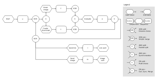 The event-driven process chain flowchart sample "EPC diagram" was created on the base of illustration from "Methods for the specification and verification of business processes. 19 - Event-driven process chains. Roberto Bruni. 2011".