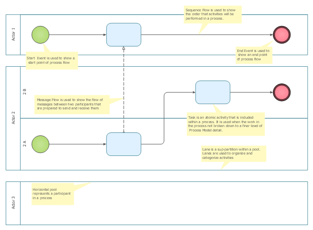 Swim lane diagram BPMN 1.2 template, task, start, horizontal lane, lane, end,