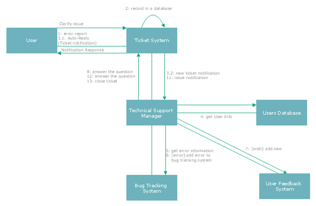 UML communication diagram - Ticket processing system