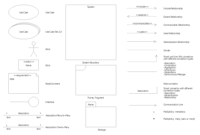 The vector stencils library "UML use case diagrams" contains 25 symbols for the ConceptDraw PRO diagramming and vector drawing software.