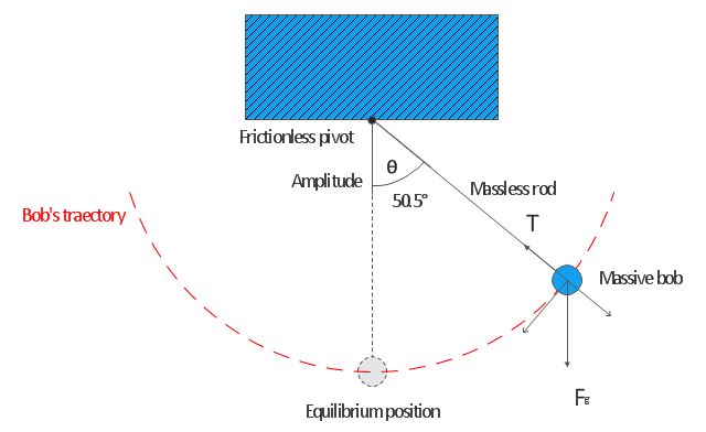The diagram example "Mathematical pendulum" was created using the ConceptDraw PRO diagramming and vector drawing software extended with the Physics solution from the Science and Education area of ConceptDraw Solution Park.