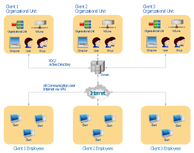 The AD diagram example "Active Directory structure diagram" was created using the ConceptDraw PRO diagramming and vector drawing software extended with the Active Directory Diagrams solution from the Computer and Networks area of ConceptDraw Solution Park.