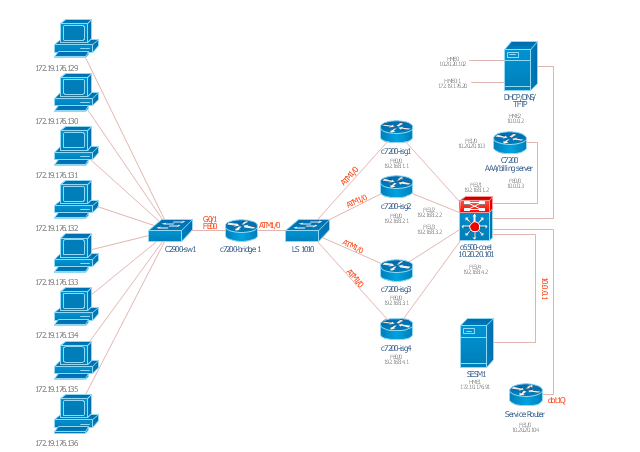 This computer network topology diagram example "Cisco ISG" was created using the ConceptDraw PRO diagramming and vector drawing software extended with the Cisco Network Diagrams solution from the Computer and Networks area of ConceptDraw Solution Park.