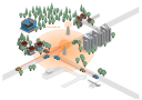 This network diagram sample depicts the cooperative delay-tolerant vehicular communication system.