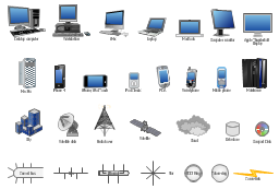 Use these shapes for drawing LAN, MAN and WAN diagrams at physical and logical levels, network architecture, topology, wiring and layout schematic and plans.