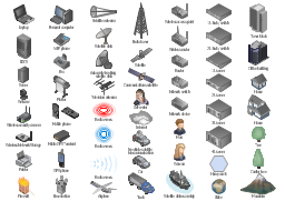 Use these equipment shapes for drawing diagrams of computer and telecommunication networks, LAN, MAN and WAN architecture, physical and logical topology, wiring schematic and cabling layout plans.