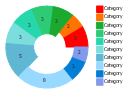 "A doughnut chart (also spelled donut) is functionally identical to a pie chart, with the exception of a blank center and the ability to support multiple statistics as one." [Pie chart. Wikipedia]