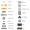 , trash can, site light, security gate, security booth, manhole, lamp post, handicapped sign, fire hydrant, dumpster, drain, collection box, bollard line, bollard, bike rack, bench,