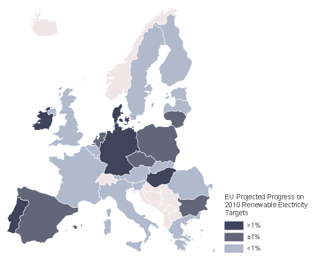 This example was created on the base of thematic map "2009 EU Renewable Electricity Share" from the article "European Union countries reach for higher renewable electricity generation" on the website of U.S. Energy Information Administration (EIA).