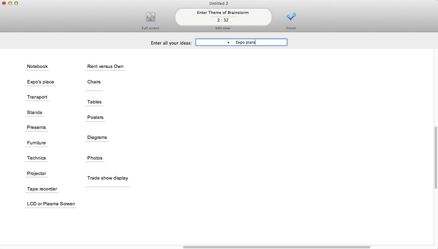 ConceptDraw MINDMAP lets not only brainstorm your ideas, but also effectively organize and manage them, design professional looking mind maps from the brainstormed ideas. ConceptDraw MINDMAP is also effective for problem solving and decision making.