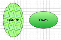 Instead of tiring coloring of paper diagram you can fill all selected areas with the selected color at once. It is very convenient if you have a lot of areas of the same type in your diagram, for example flower-beds. Moreover, you can use not only solid colors but also different fill patterns or gradient fill. For objects description you can use a legend, i.e. define which color corresponds to which area type, or you can add a text description to objects on the diagram. Basically, any area in the diagram could be signed as you can use small fonts and zoom in any part of the diagram later.