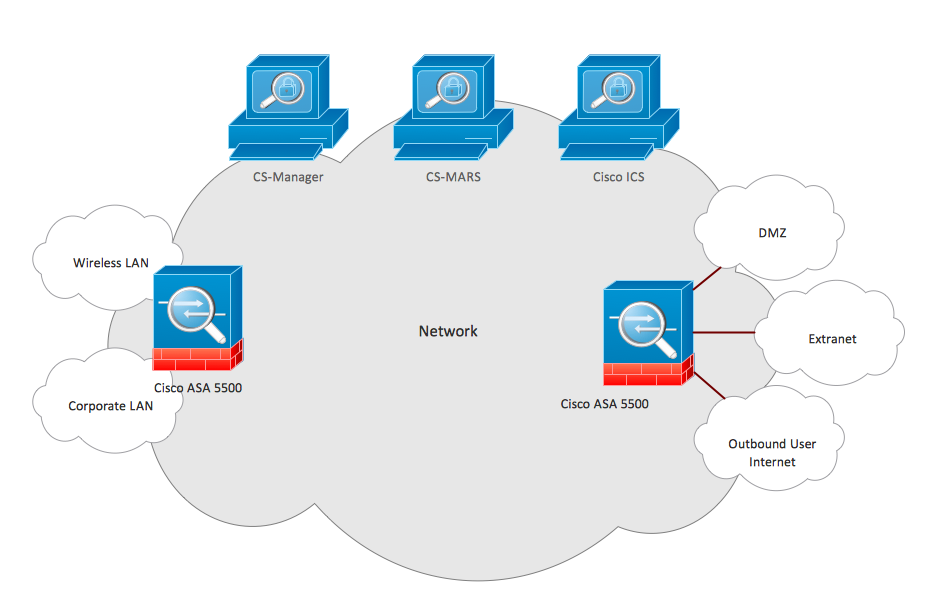 The following examples were created in ConceptDraw DIAGRAM diagramming and vector drawing software using the Cisco Network Diagrams Solution. You can choose them from ConceptDraw STORE.
