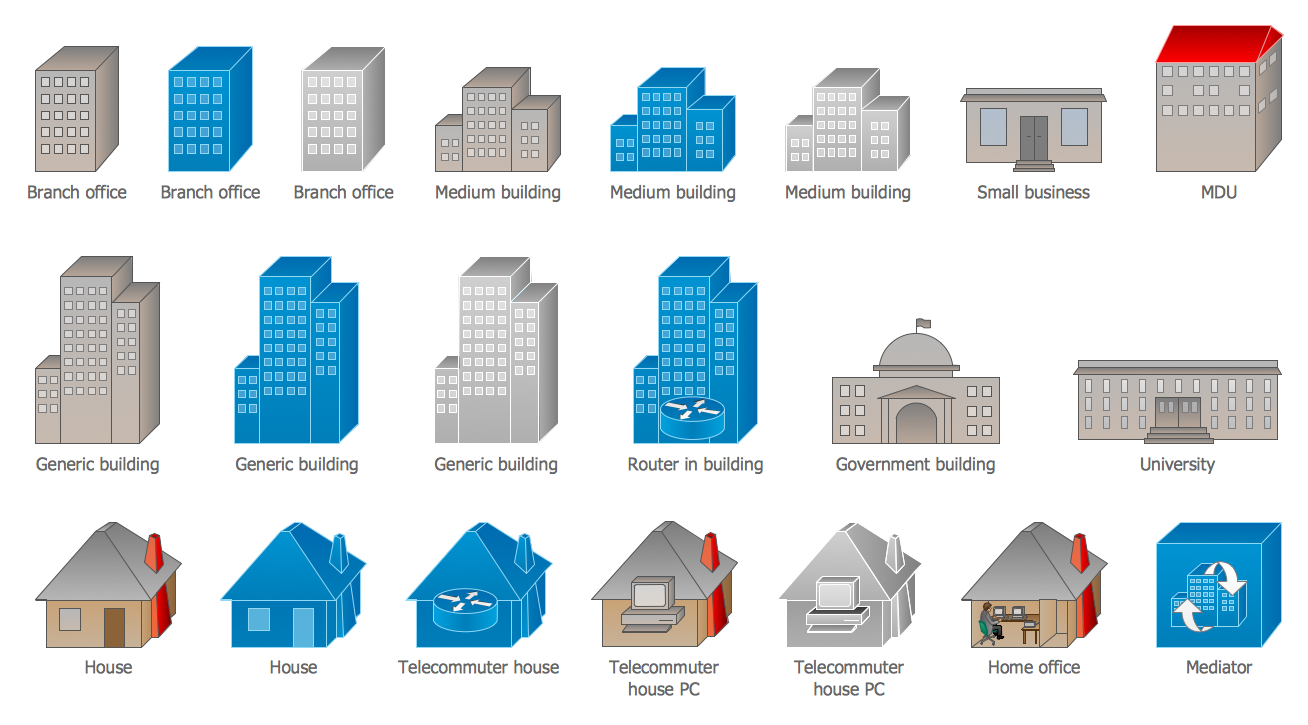 All source documents are vector graphic documents. They are available for reviewing, modifying, or converting to a variety of formats (PDF file, MS PowerPoint, MS Visio, and many other graphic formats) from the ConceptDraw STORE. The Cisco Network Diagrams Solution is available for all ConceptDraw DIAGRAM or later users.