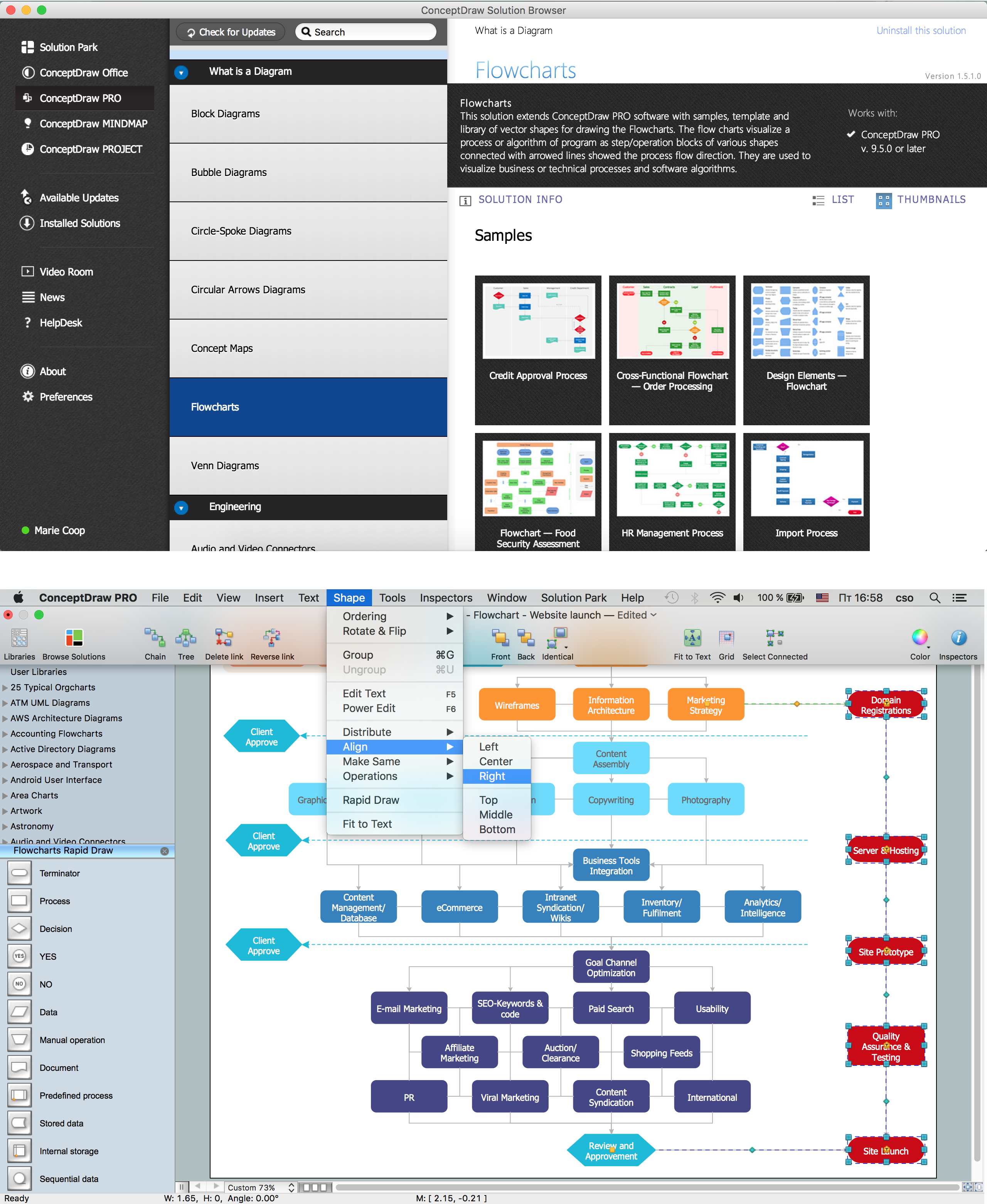 Utilisez la schématisation ConceptDraw DIAGRAM et un logiciel de dessin vectoriel avec des modèles d'organigrammes pour concevoir vos propres diagrammes d'aspect professionnel, rapide et facile.