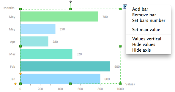 - Select the bar chart by mouse click. The Action menu icon appears.