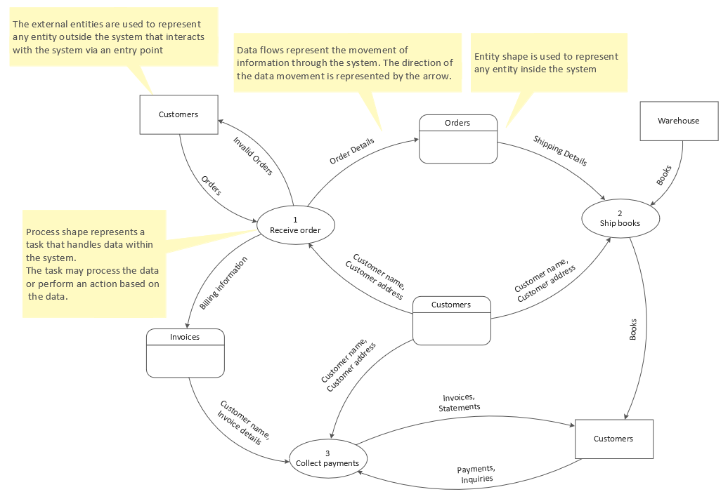 All source documents are vector graphic documents. They are available for reviewing, modifying, or converting to a variety of formats (PDF file, MS PowerPoint, MS Visio, and many graphic formats) from the ConceptDraw STORE. The Data Flow Diagrams Solution is available for all ConceptDraw DIAGRAM users.