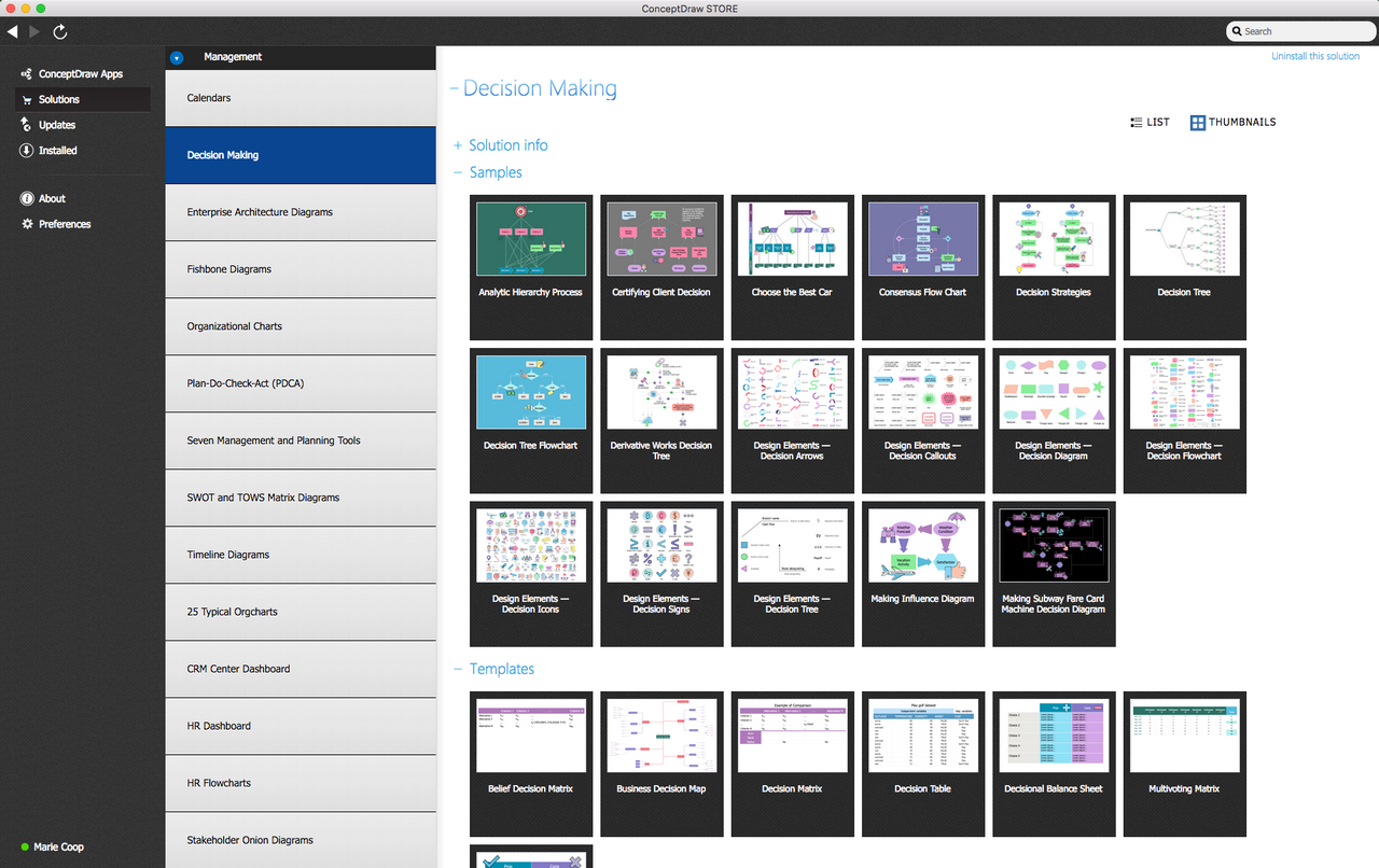 Using the Decision Making solution as an extension to the ConceptDraw DIAGRAM diagramming and drawing software may help any of its users to create the good-looking representation of the data in a way of a decision matrix. Either being a decision-maker or the one who only creates the needed drawings, you must find the Decision Making solution a useful tool for completing the tasks of illustrating the needed matrices within a short period of time.