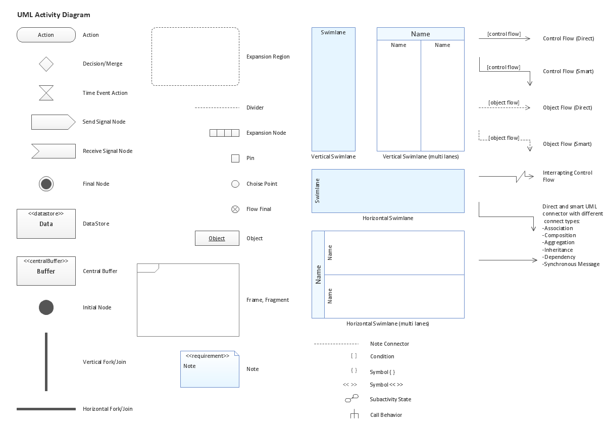 “Unified Modelling Language” is known to be useful for applying in different spheres of business activity (e.g., internet technologies, finance, banking, aerospace healthcare, etc.), being an accepted standard for modelling any needed systems. There are a few notations you can use for making your “UML diagrams”, being made for visual representation of any needed requirements, subsystems, both logical and physical elements as well as structural and behavioural patterns. Being standardized as well as “general-purpose” language, Unified Modelling one is very popular, especially in software engineering, including a set of the graphic notation techniques to use them for creating different visual models of software-intensive as well as object-oriented systems. There are thirteen types of Unified Modelling Language diagrams, all of which you can create within ConceptDraw DIAGRAM software. Having it means being able to finish with a final result within only a few hours or minutes, getting a great as well as smart looking diagrams in the end. The mentioned types of UML diagrams, that can be always created with a use of ConceptDraw DIAGRAM as well as the solution from ConceptDraw STORE, are: “class” (also known as “package”), “sequence”, “collaboration”, “use case”, “object”, “component”, “activity”, “state machine”, “deployment”, “composite structure”, “timing” and “interaction overview” UML diagrams. Some of the described types of Unified Modelling Language will be described later in this article.